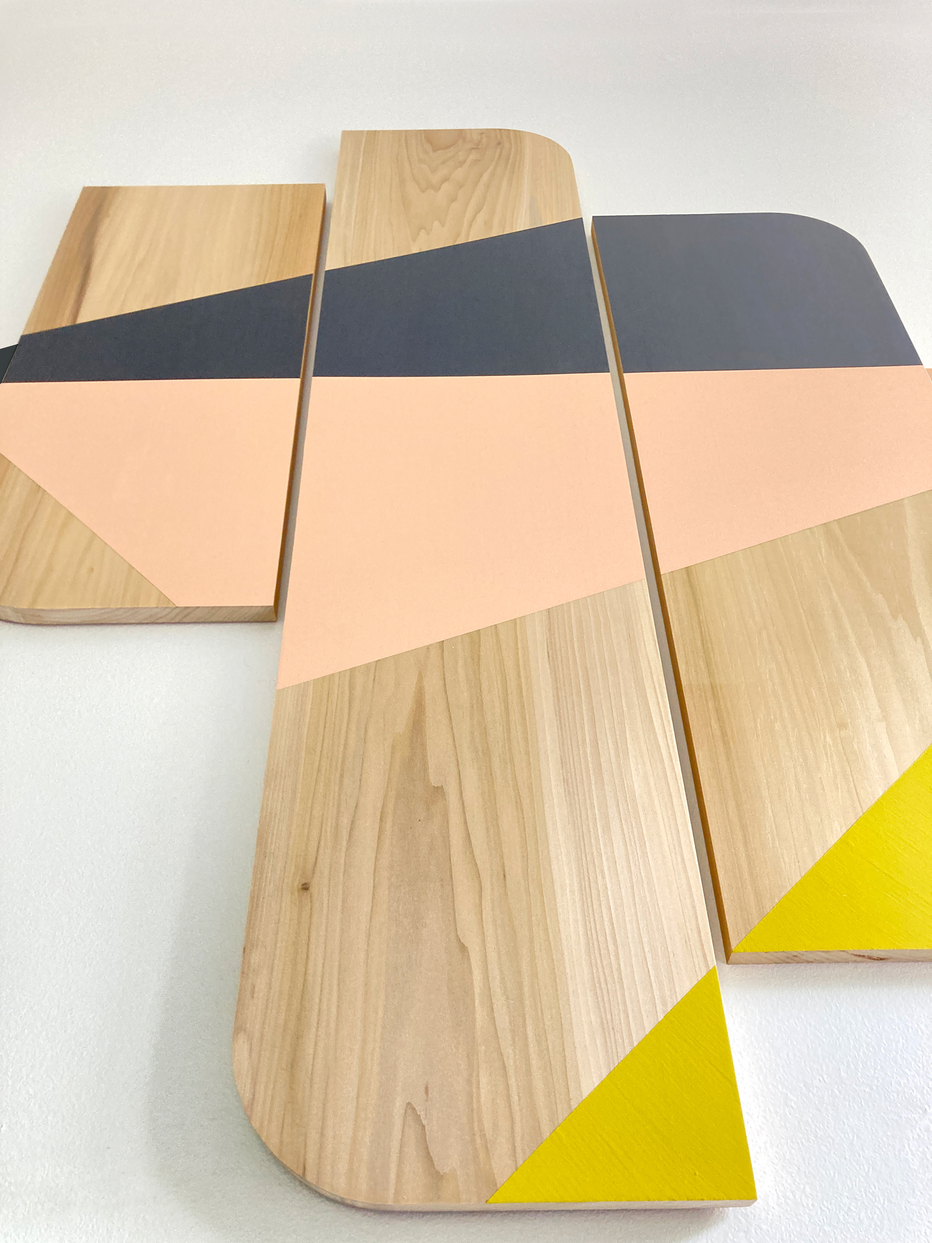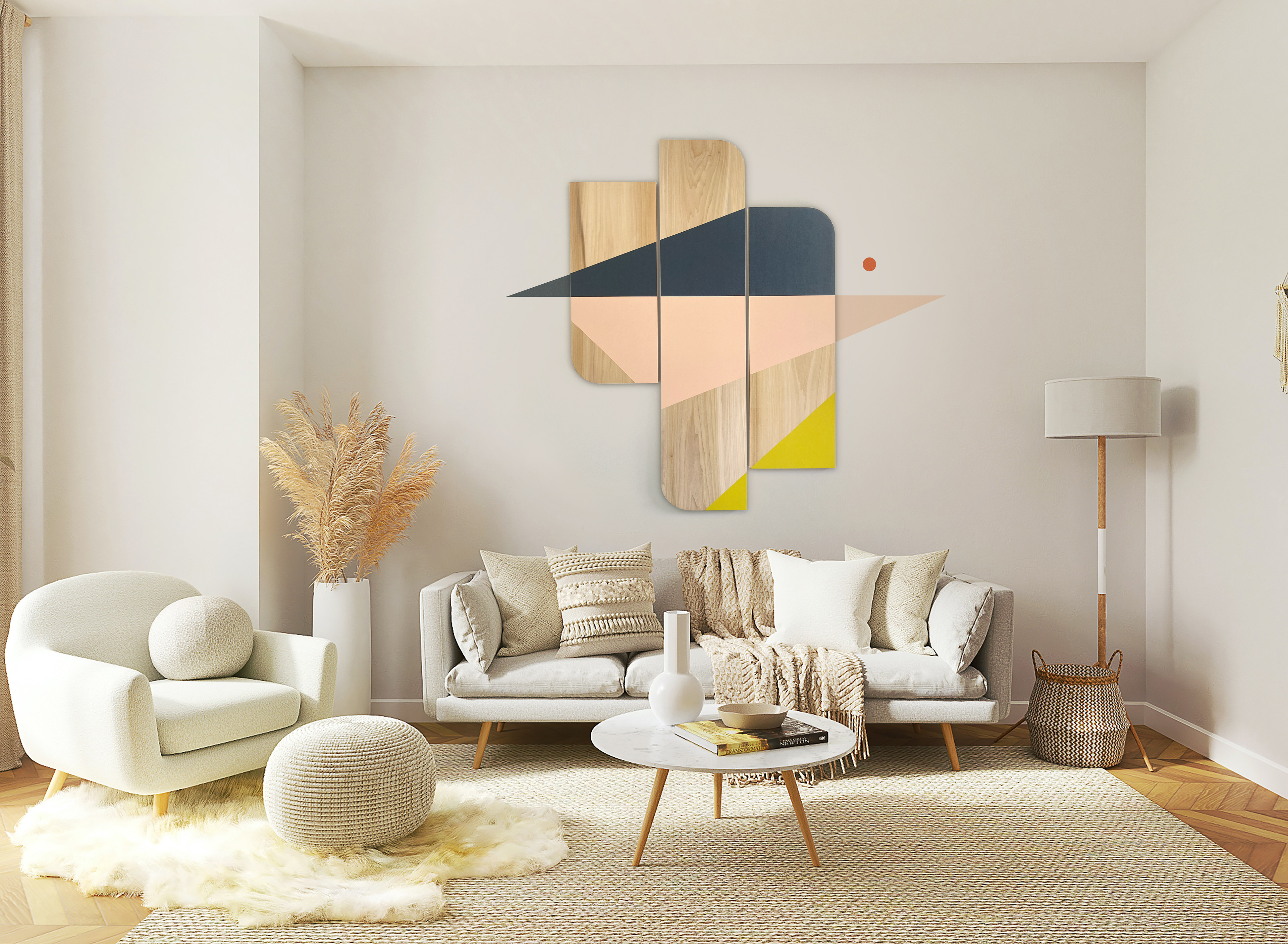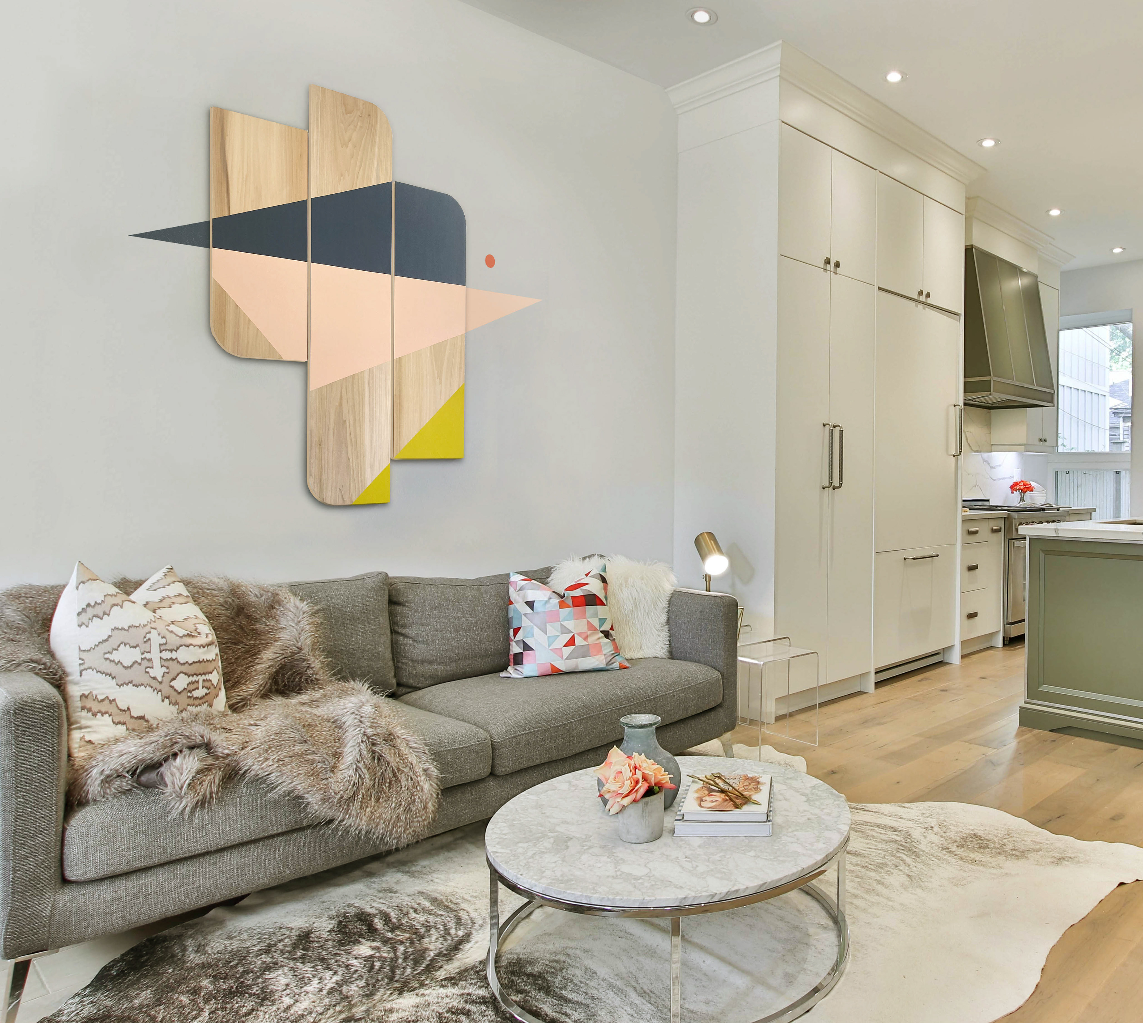 3 Panel Set, Total dimensions: 62" w x 48" h (including painted wall installation and 0.5" margin between panels). Available upon request.
