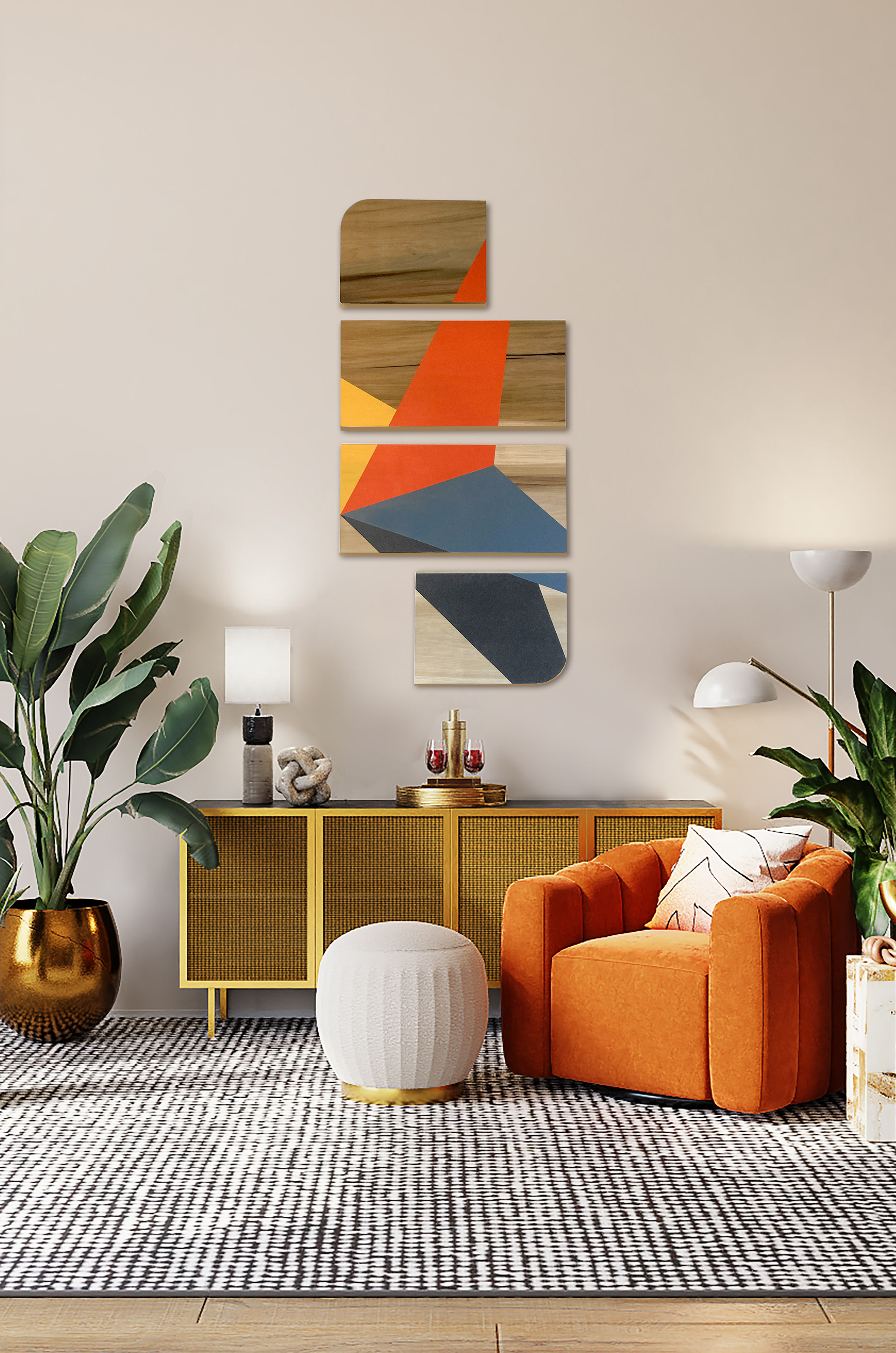 4 Panel Set, Total dimensions: 23" w x 45" h (including 2" margin between panels) Available upon request.