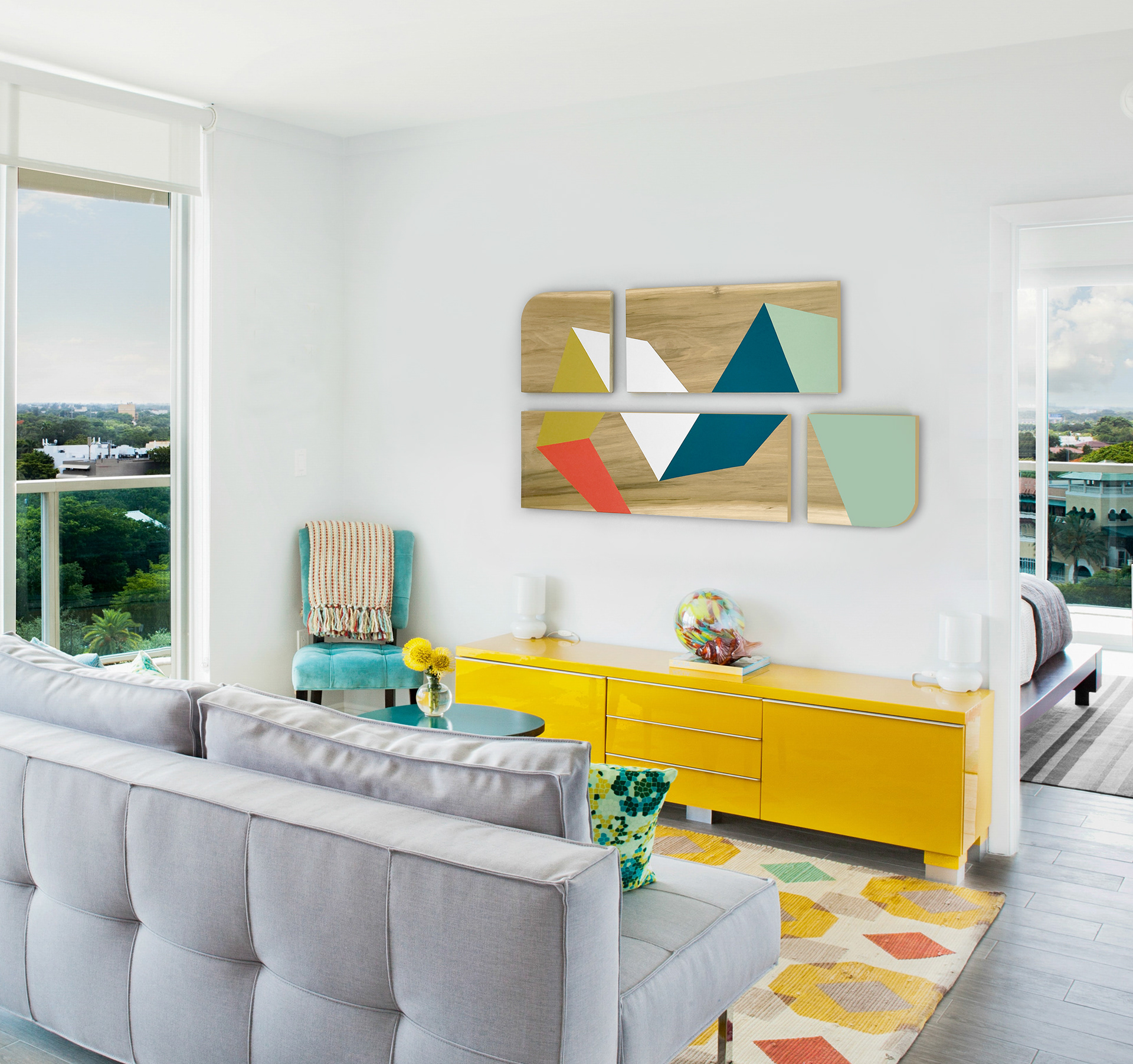 4 Panel Set, Total dimensions: 45" w x 25" h (including 2" margin between panels) SOLD